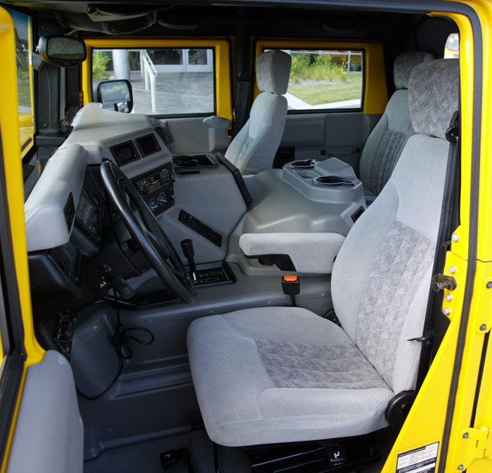 '01 HUMMER H1 Open Top 9,xxx mi. Turbo Diesel, Deluxe interior, Monsoon Stereo with CD Changer, Central tire inflation, Cruise, A/C, Driveline protection, Brushguard, Trailer towing package, Power mirrors, Power windows, keyless entry, Rocker panel protection, Heated Windshield, Alloy Wheels, Winch, Side Steps, Navigation. Yellow. P630