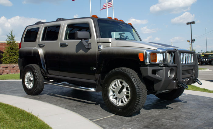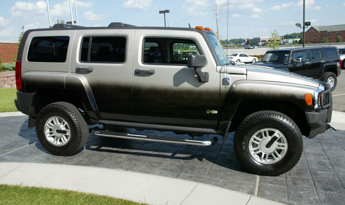 '06 HUMMER H3. 10,xxx mi. Luxury Package (Carpeted Floor Mats, Cargo Area Floor mat, Heated Leather Seats, Power Seats, Monsoon Sound System, Leather Steering wheel), Automatic Transmission W/Stabilitrak Stability Control, Sunroof, Chrome Tubular Assist Steps, Chrome Fuel Fill Door, Trailer Hitch, XM Satellite Radio, Universal Garage Door Opener, Brushguard. Custom Two Tone Smoked Black and Boulder Gray Metallic Paint with Ebony Leather Interior. H2156A