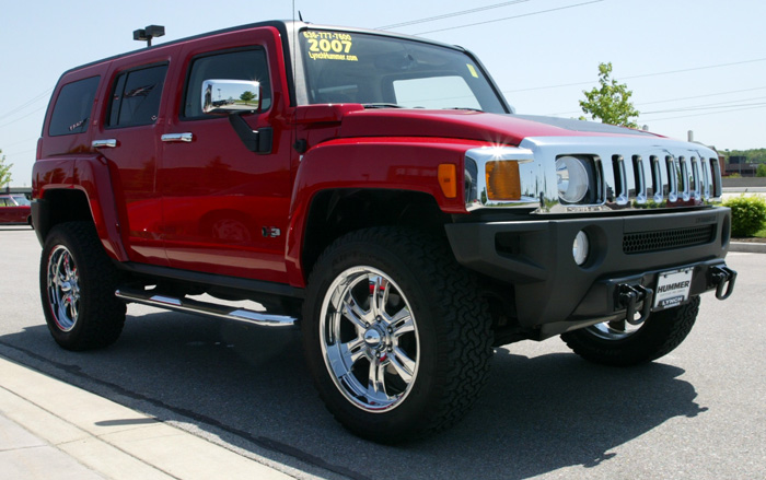 '07 HUMMER H3. 24,xxx mi. Automatic Transmission W/Stabilitrak Stability Control, Trailer Hitch, Power Sunroof, Chrome Appearance Package (Chrome exterior door handles, Chrome exterior mirror caps), Chrome Tubular Assist Steps, Chrome Fuel Door, 20 Inch Chrome Tire & Wheel Package. Victory Red with Ebony Cloth Interior. P1006
